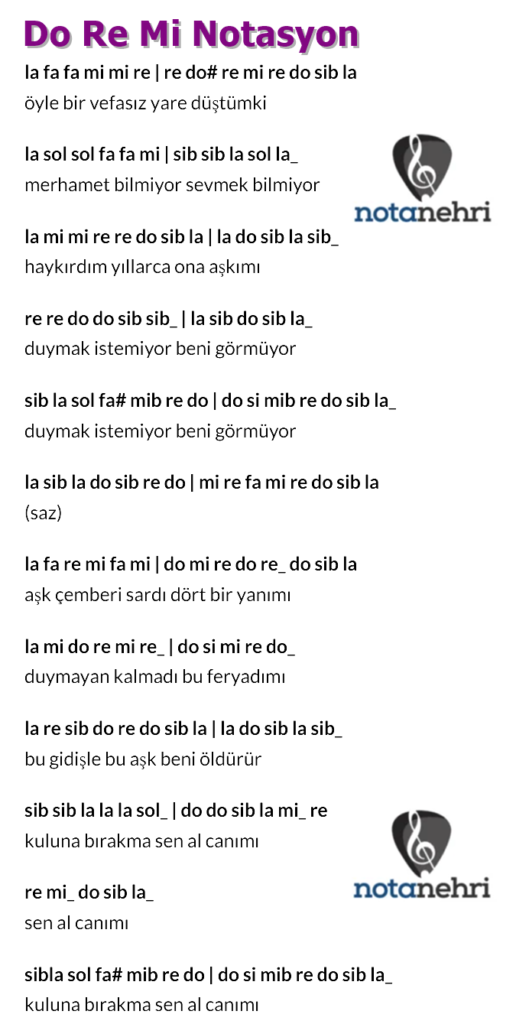 Nilüfer – Aşk Çemberi Do,Re,Mi Notasyon PDF Dosyası