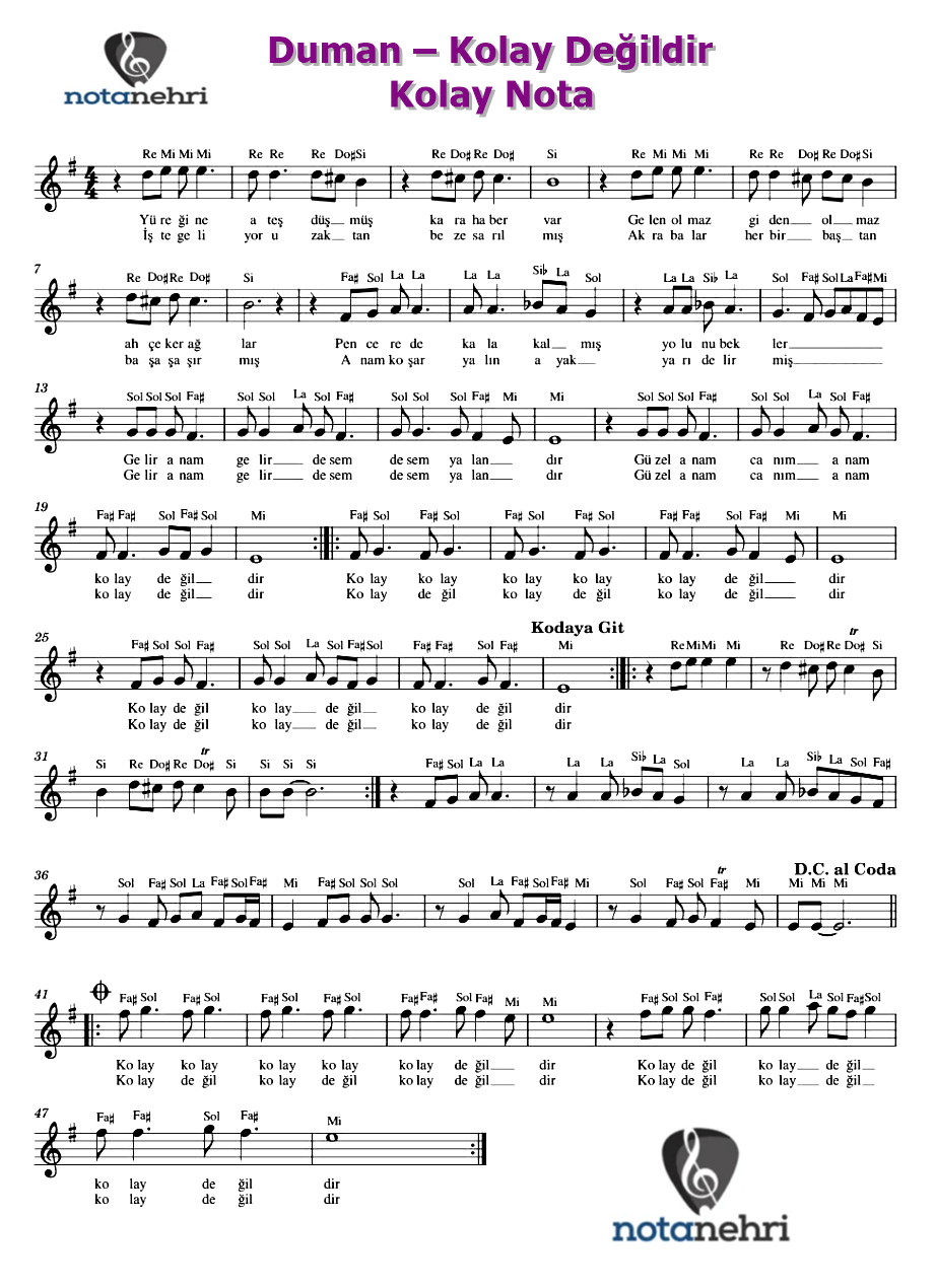 Bu yazımızda Duman‘ın seslendirdiği Kolay Değildir şarkısının kolay nota ve piyano notalarını paylaştık. Şarkının söz...