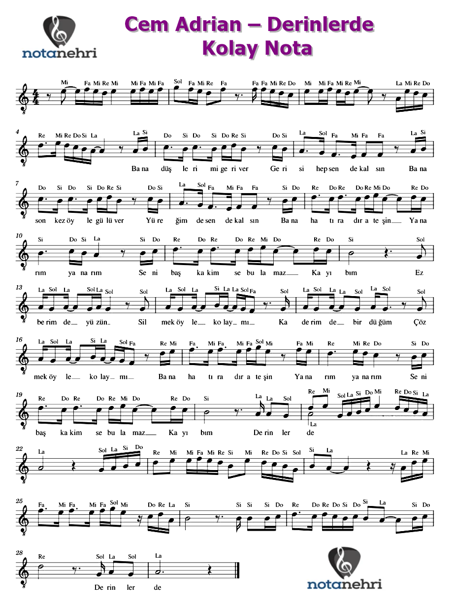 Bu yazımızda Cem Adrian‘ın seslendirdiği Derinlerde şarkısının kolay nota ve piyano notalarını paylaştık. Şarkının bestesi...
