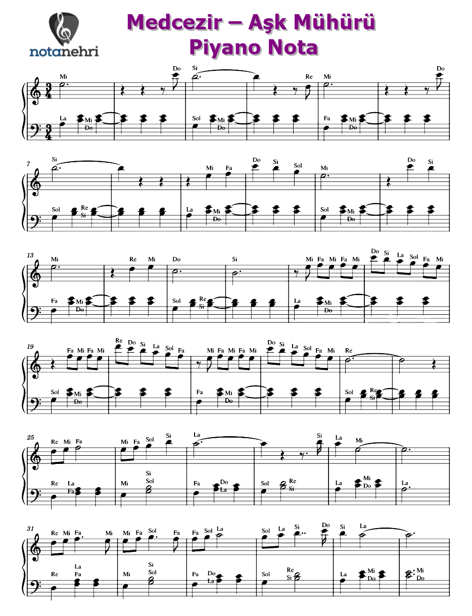Bu yazımızda Medcezir dizisinin Aşk Mühürü şarkısının piyano notasını paylaştık. Şarkının bestesi Toygar Işıklı‘ya aittir....