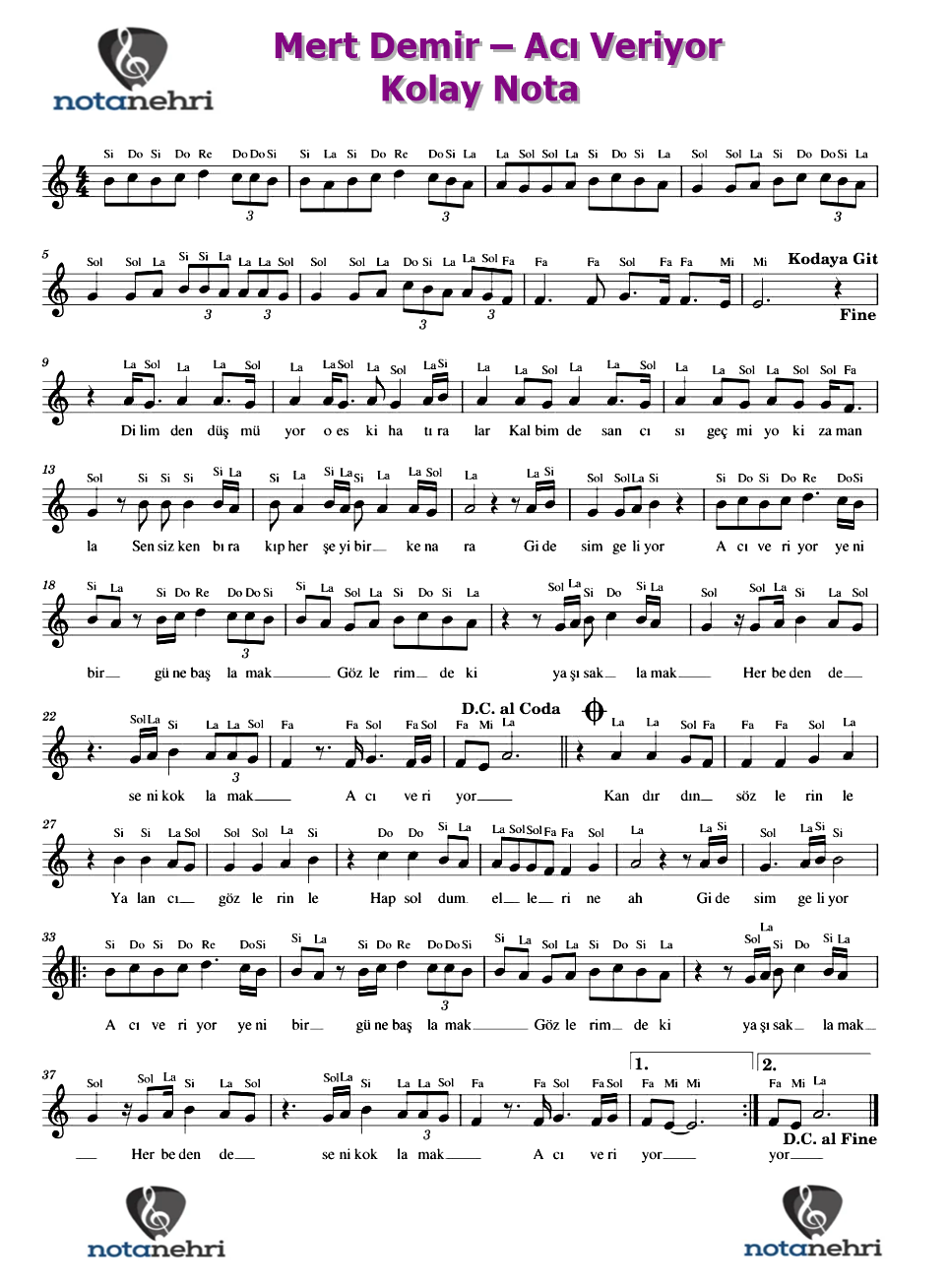 Bu yazımızda Mert Demir‘in seslendirdiği Acı Veriyor şarkısının kolay nota ve piyano notalarını paylaştık. Şarkının...