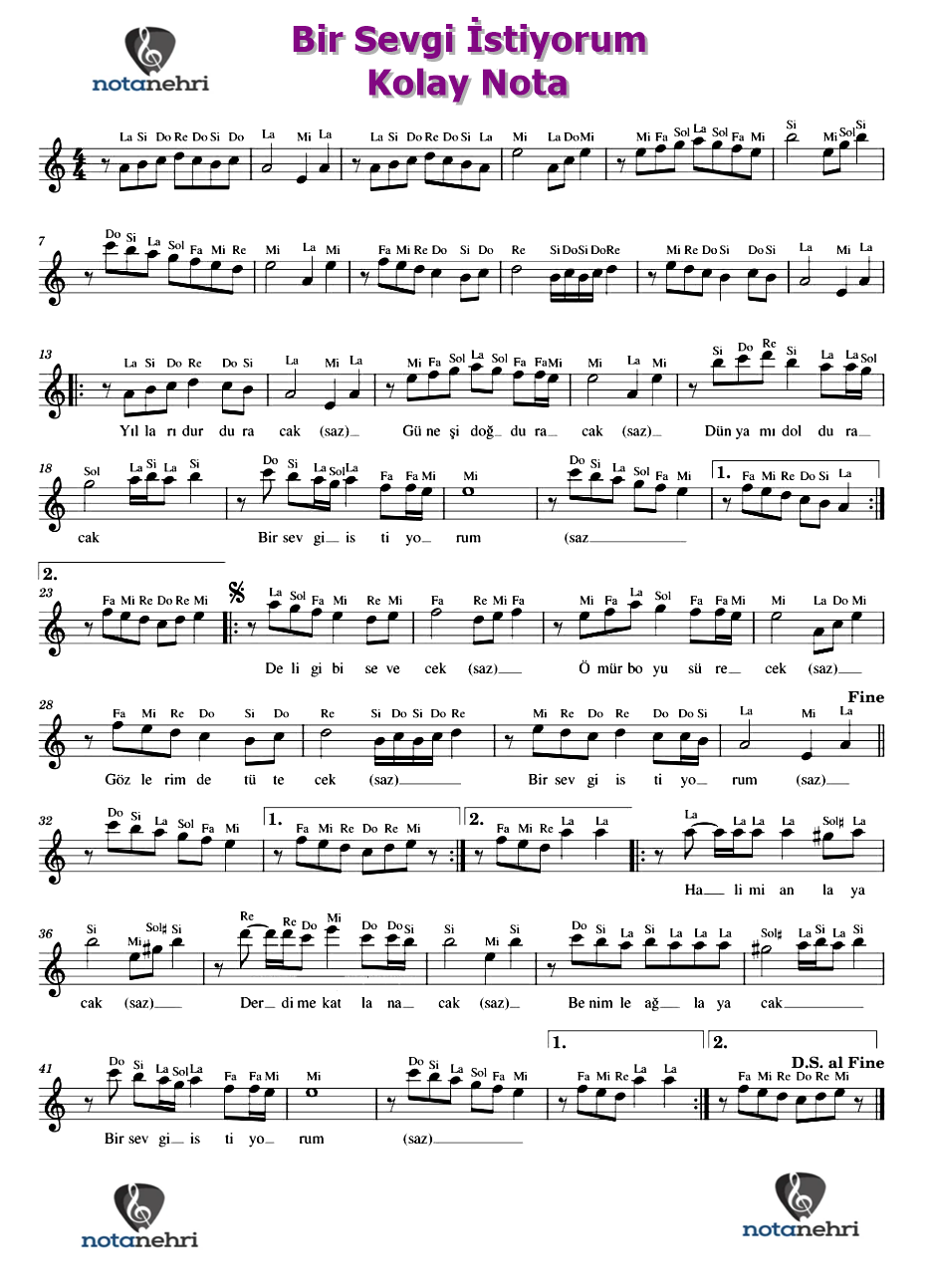 Bu yazımızda Bir Sevgi İstiyorum şarkısının kolay notasını paylaştık. Şarkının bestesi Necdet Tokatlıoğlu‘na, güftesi Halit...