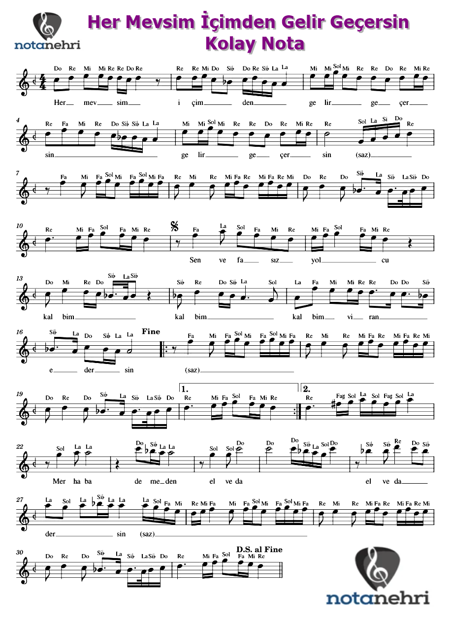 Bu yazımızda Türk Sanat Müziğinin sevilen şarkılarından Her Mevsim İçimden Gelir Geçersin şarkısının kolay notasını...