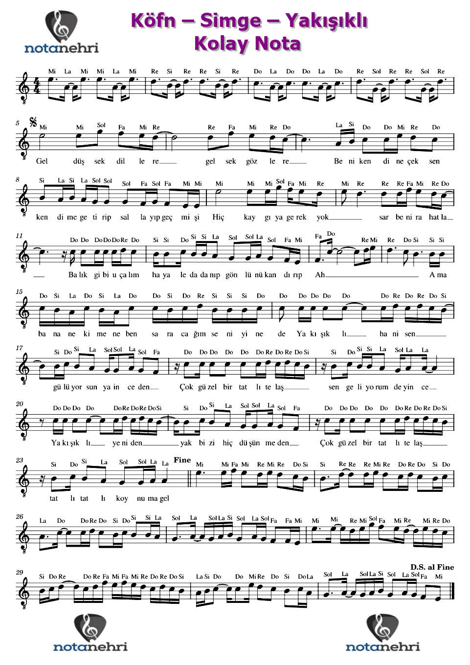 Bu yazımızda Çay Benim Çeşme Benim şarkısının kolay nota ve trt notalarını paylaştık. Notasyonu la...